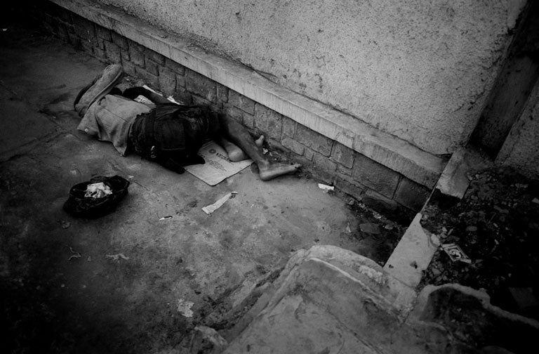 A street child asleep on the street. At night, street children are at particular risk of physical and sexual abuse by adults and law enforcement personnel. © 2005 Marcus Bleasdale
