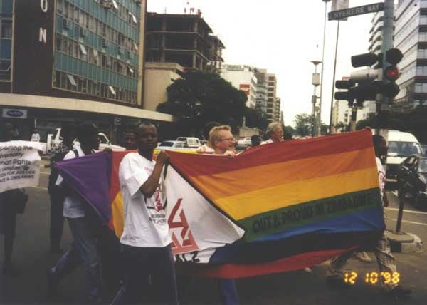 2.LGBT marchers join the Human Rights Day demonstration for the first time, Harare, Zimbabwe, December 10 © 1998 Scott Long/Human Rights Watch.