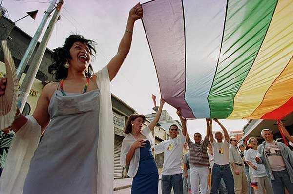 5.Carrying the rainbow flag in the first-ever Pride March in Guatemala, June 25 © 2001 Reuters Limited.