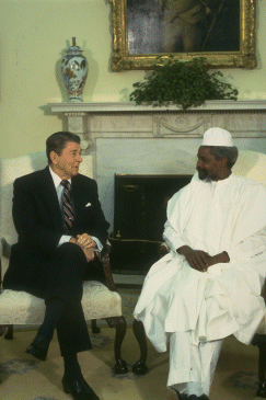 Washington, D.C., 1987 Hissein Habre meets with U.S. President, Ronald Reagan Credit: Corbis Sygma Pour obtenir des photographies d'Hissein Habre, (aux Etats-Unis) Frédéric Guarino Corbis Sygma New York Tel 1 212 675 7900 Fax 1 212 675 2433 email: fredericg@corbis.com (en France) Dominique Martel Corbis Sygma Paris Tel 33 1 47 27 70 30 Fax 33 1 47 27 23 59 email: dmartel@sygma.fr |