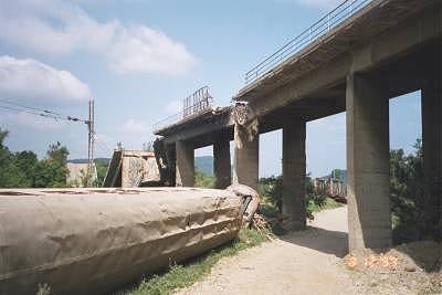 An April 12 attack on the Grdelica gorge bridges over the Juzna Morava river (incident No. 12) killed 20 civilians aboard a passenger train. The pilot attacking the railroad bridge failed to observe the approaching train.