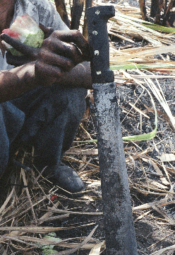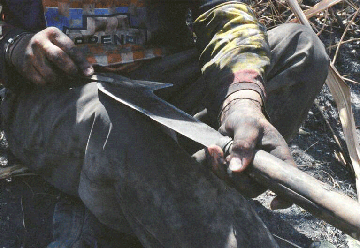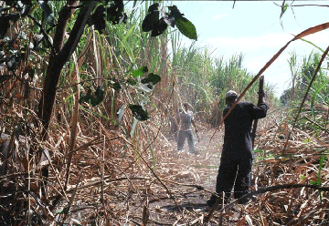 Los trabajadores niños y adultos suelen lesionarse cortando caña. |