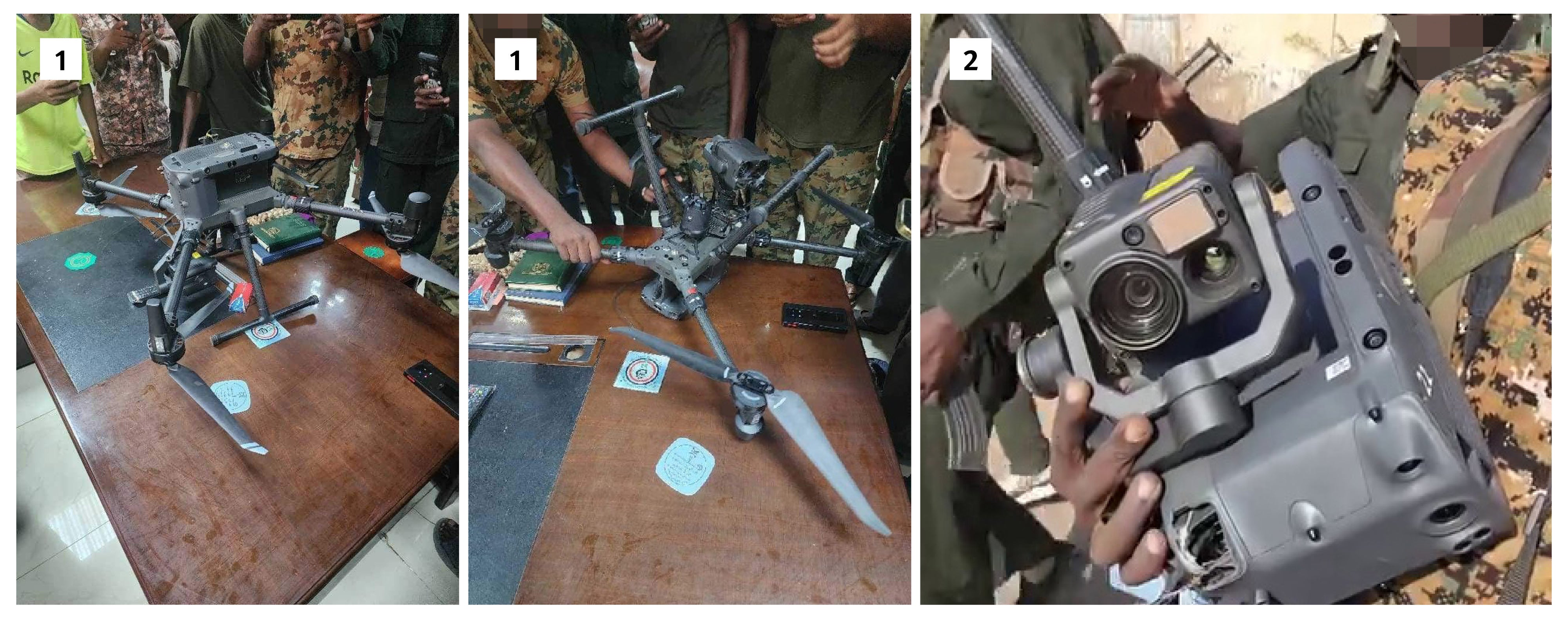 Human Rights Watch identified five posts showing drones—or footage from them—that, from their build, markings or other specific characteristics, identify them as manufactured by DJI, a China-based commercial drone company. The drones are commercially available to civilians. These drones appear to be used by both the SAF and the RSF, including as attack drones. The drone type was used at least three times by the RSF and once by the SAF in military operations in Darfur (see above, “Potential Violations of the