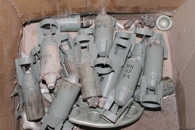 Unexploded bomblets that activists report were cleared by FSA after October 16 strike on Eastern al-Buwayda.