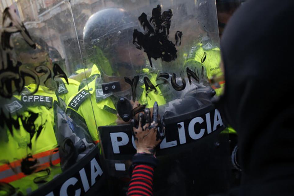 Members of civil organizations and ecologists protest against the oil explotation at the Yasuni ITT reservation on August 27, 2013 in Quito, Ecuador.