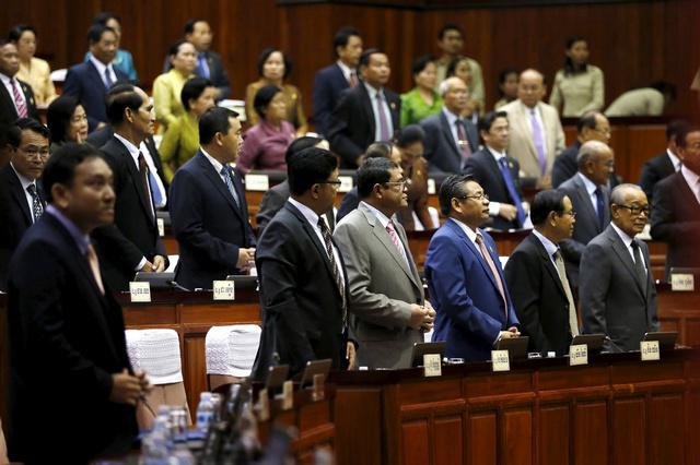 Members of parliament attend a plenary session at the Cambodia National Assembly in Central Phnom Penh on December 16, 2015.