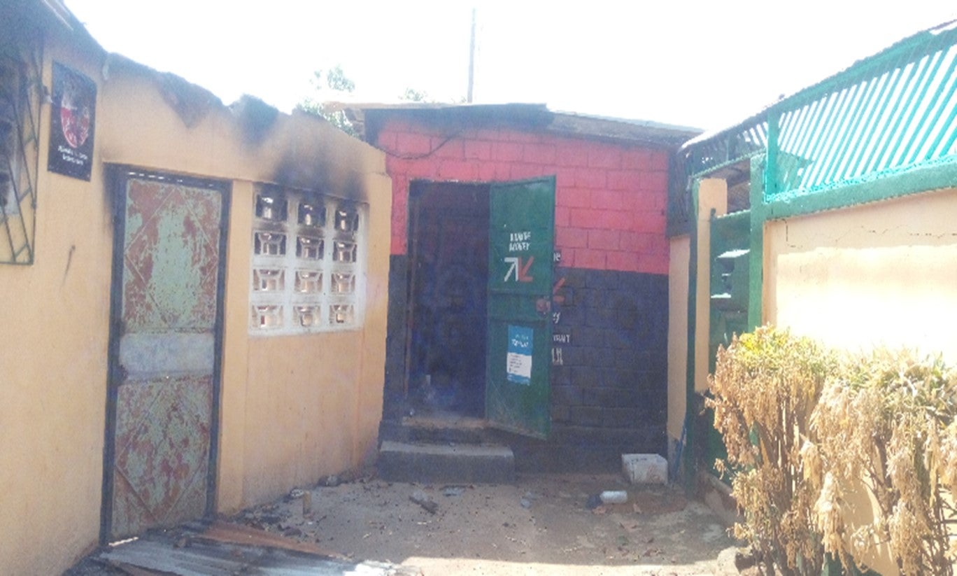 The hotel ‘Amazone’ in ‘Bellevue’ neighborhood, in Nzérékoré, was attacked and partially burned by violent mobs on March 22, 2020.