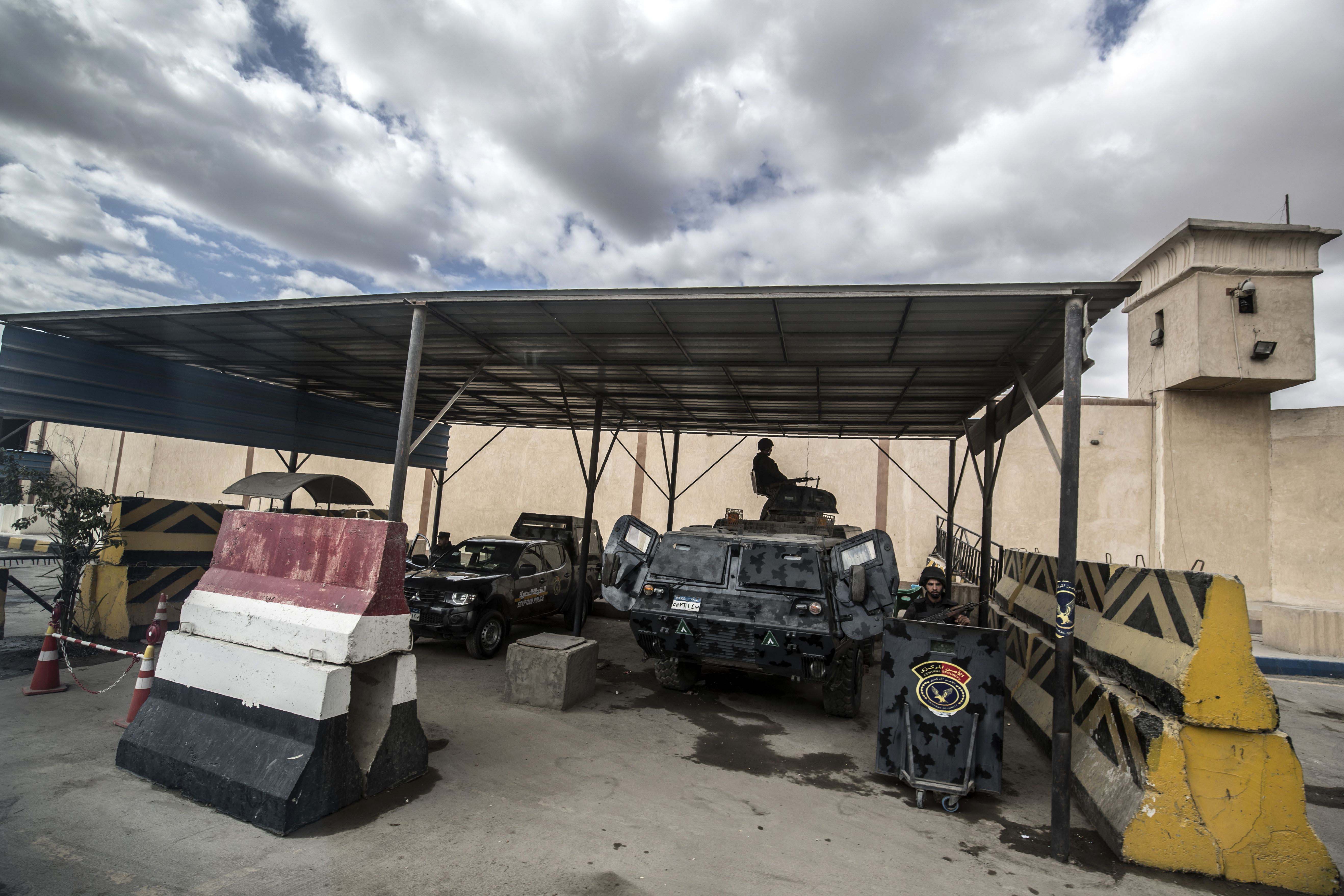 Police officers stationed outside Tora prison on the southern outskirts of the Egyptian capital Cairo on February 11, 2020