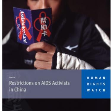Based on on-the-ground interviews with Chinese AIDS activists, gay rights activists, activists working with drug users, and website managers, the report, "Restrictions on AIDS Activists in China," shows that while senior officials have said they want to encourage China's emerging civil society, many AIDS activists face state harassment and bureaucratic restrictions. First-hand accounts provided to Human Rights Watch reveal that activists conducting AIDS information workshops or working with those at high risk of HIV have been harassed or detained, and that pornography laws are used to censor websites providing AIDS information to gay men and lesbians under pornography laws.