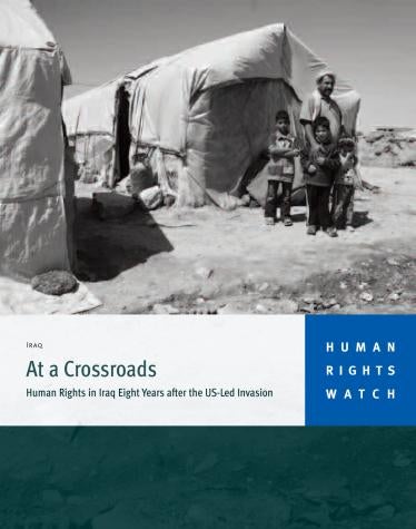 Although improvements in security since 2008 have reduced the assaults against media workers, journalists and press freedom advocates remain at risk in Iraq. On February 21, Human Rights Watch released a survey report, "At a Crossroads: Human Rights in Iraq Eight Years After the US-led Invasion," which documents attacks against media and press restrictions. The report calls on the government to protect the rights of journalists and to amend its penal code and other laws that violate freedom of speech.