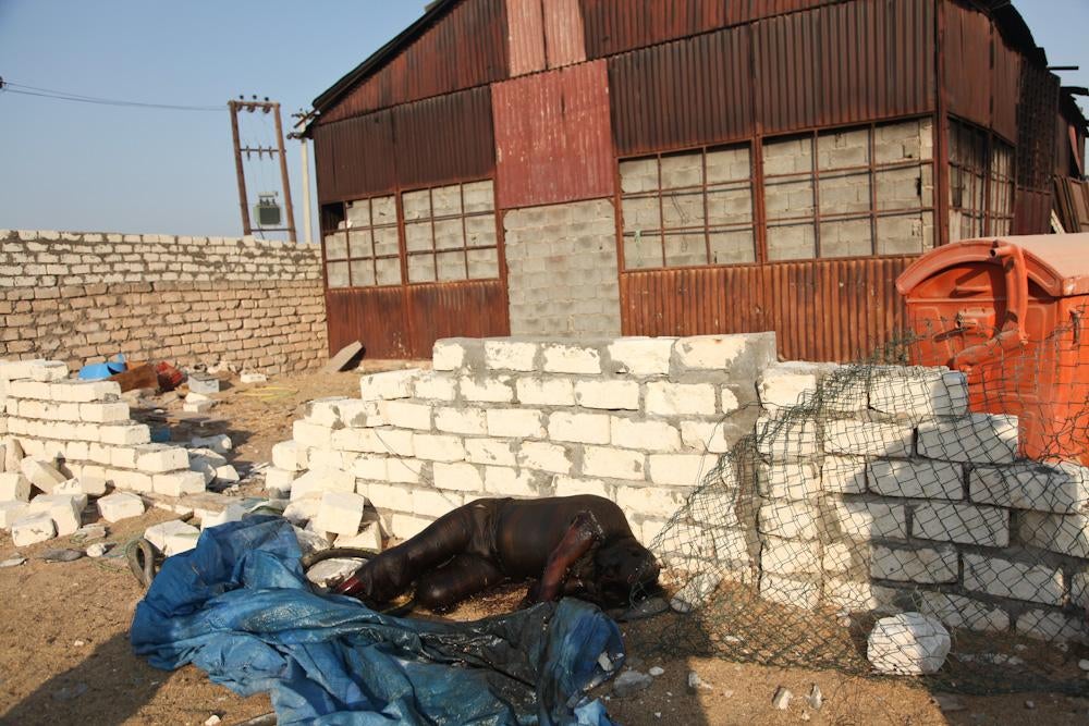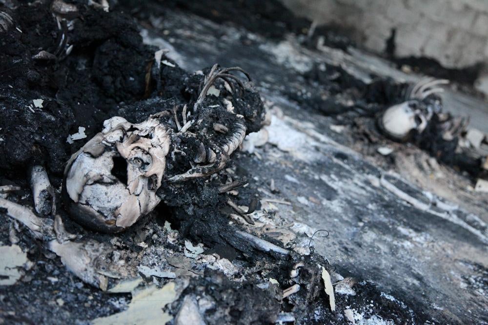 On August 27, Human Rights Watch counted approximately 45 distinct human remains in the ashes of the warehouse as well as other unidentifiable burned matter. Human Rights Watch also observed what appeared to be bullet holes in the tin roof of the warehouse. Smoke was still rising in one or two parts of the warehouse during the visit.