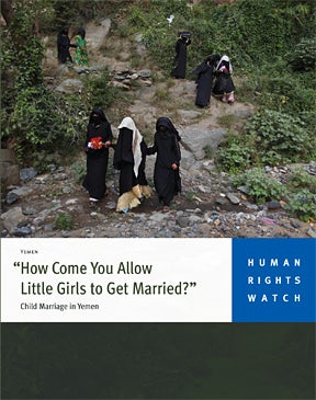 The report is based on field research in Yemen’s capital, Sanaa, between August and September 2010, including interviews with more than 30 girls and women who were married as children, members of nongovernmental organizations, and staff members at the Health and Education Ministries.