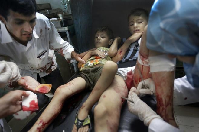 In all of the cases documented by Human Rights Watch, with the exception of the Manbij bakery attack, government forces attacked the bakery when local residents were waiting in line. The ordnance, which included artillery shells, rockets, and bombs, hit very close to the lines, and pieces of shrapnel sprayed the people gathered, killing and seriously wounding scores of them. In a few cases, people waiting in line ran away before the attack when they heard the approaching fighter jets.