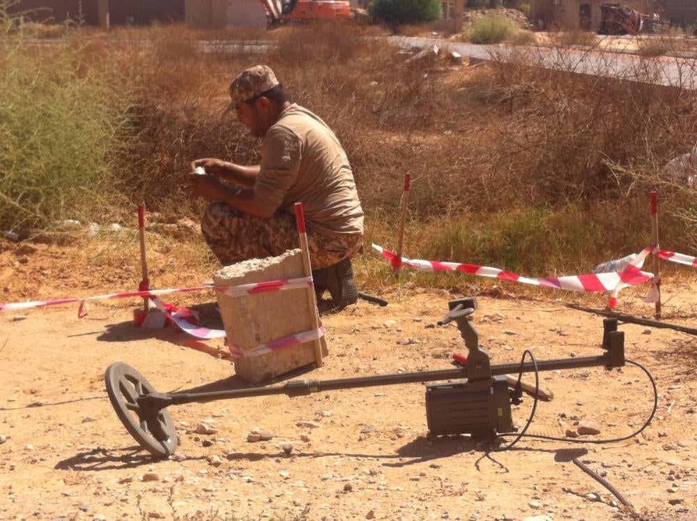When the Gaddafi government progressively lost control of the country in 2011, anti-government forces and civilians gained access to massive weapons depots containing hundreds of thousands of landmines. Since 2011, local and international mine action organizations have worked with Libyan authorities and the United Nations to collect and destroy ordnance as well as clear mines, but the work is far from complete. Human Rights Watch witnessed the destruction of some stockpiled landmines in 2012, but does not believe there has been any systematic or coordinated stockpile destruction effort.