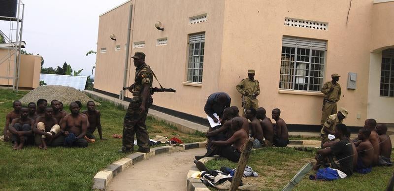 In Kasese district, police and military swiftly countered the initial attacks with cordon and search operations, beating and arresting many Bakonzo people. Victims and witnesses told Human Rights Watch that alleged suspects were again beaten in police detention and denied access to lawyers and their families. Photographs from one session before the military court show defendants injured, struggling to walk and move because of alleged beatings. Many were eventually taken to Katojo prison, where they remain.