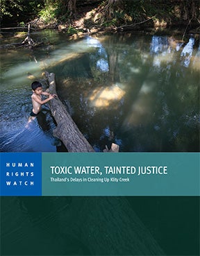 The 32-page report, “Toxic Water, Tainted Justice,” describes 16 years of failure by Thailand’s Pollution Control Department and public health authorities to prevent further exposure to lead among the village’s ethnic Karen residents. A 12-minute video accompanying the report highlights serious health and environmental damage caused by a now-defunct lead processing factory, as well as the efforts by local residents to seek justice. Many residents of Lower Klity Creek village suffer the symptoms of chronic lead poisoning, such as abdominal pain, headaches, fatigue, and mood changes. Some children have been born with severe intellectual and developmental disabilities.