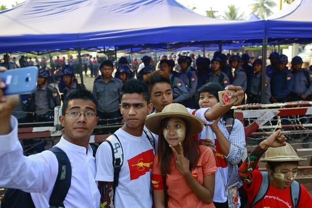 The police had recently used unnecessary force against student protesters, Human Rights Watch said. On March 5, police backed by alleged members of the infamous Swan Arr Shin (“Masters of Force”) auxiliary, many wearing red armbands stenciled with the Burmese word for “duty,” violently assaulted students and activists who had assembled outside Rangoon’s city hall to express solidarity with the Letpadan student group. Police arrested eight people, including students and members of the prominent 88 Generation Peace and Open Society group of former political prisoners. All were freed early next morning, but were informed by police that they could face charges for violating the Peaceful Assembly Law. The use of police auxiliaries to disperse demonstrators last occurred during the violent crackdown on a Buddhist monk-led protest in Rangoon in 2007.