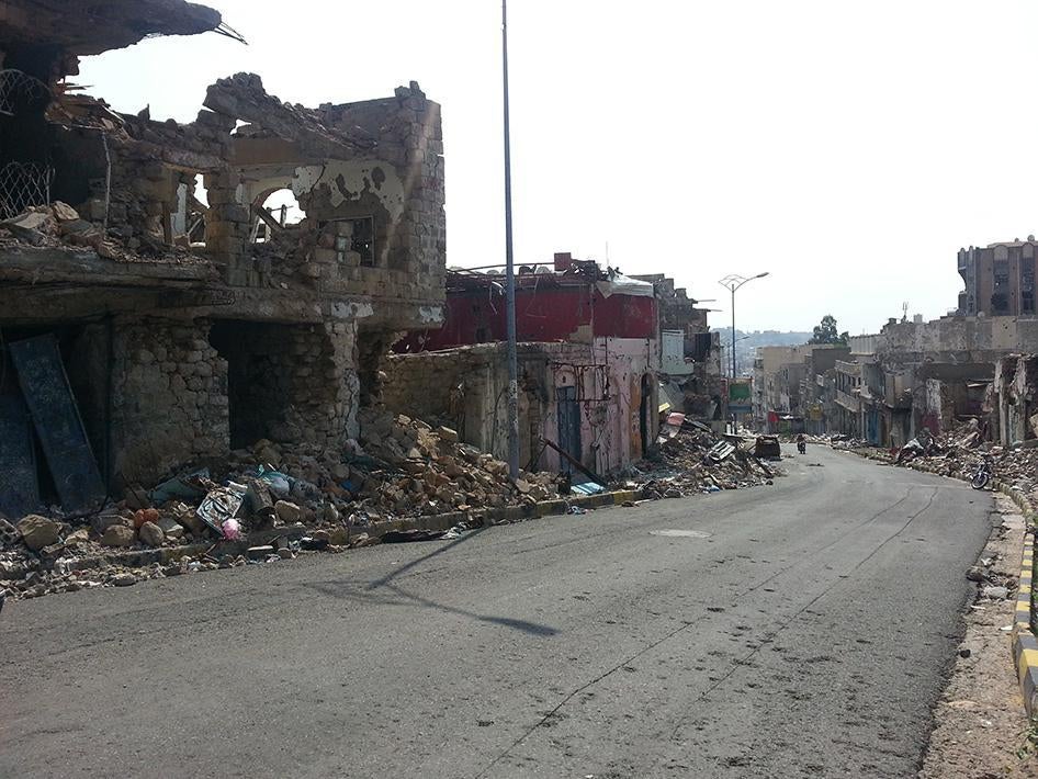 The activist, who has been documenting civilian casualties from attacks by all parties, told Human Rights Watch that from late March until October, Houthi forces deployed on an elevated area in the northeast al-Hawban district fired into the city center, nominally controlled by the local popular committees. Buildings in much of central Taizz were peppered with fragmentation marks only on their northeast facing walls, Human Rights Watch said.