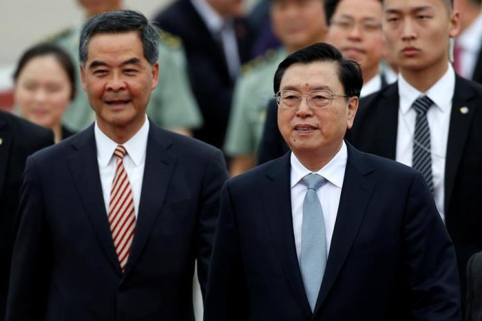 (New York) – Hong Kong officials should challenge the chairman of China’s top legislative body to make concrete commitments to respect Hong Kong’s autonomy on human rights and democratic rule, Human Rights Watch said today. Zhang Dejiang, who chairs the Standing Committee of the National People’s Congress, will meet with Hong Kong Chief Executive C.Y. Leung and other senior officials during his visit to Hong Kong from May 17-19, 2016.