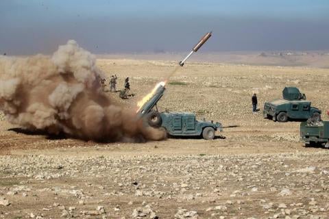 A citizen journalist posted photos and video of Iraq’s emergency response division, a special police unit, firing inaccurate rockets into west Mosul on February 17. These weapons are commonly known as improvised rocket-assisted munitions (IRAM), and they are inherently indiscriminate.