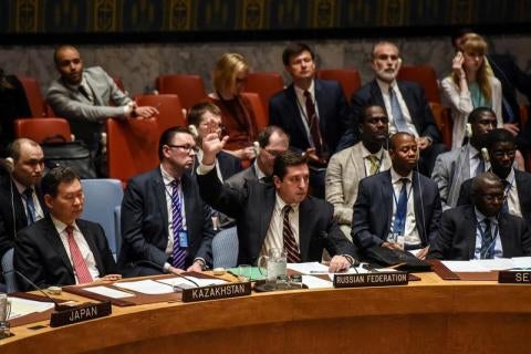 On April 12, Russia’s United Nations ambassador raised his hand to mark Moscow’s eighth veto against a resolution aimed at addressing appalling atrocities in Syria. The failed resolution would have condemned the reported use of chemical weapons in southern Idlib on April 4 and demanded that Syrian officials cooperate with an investigation.