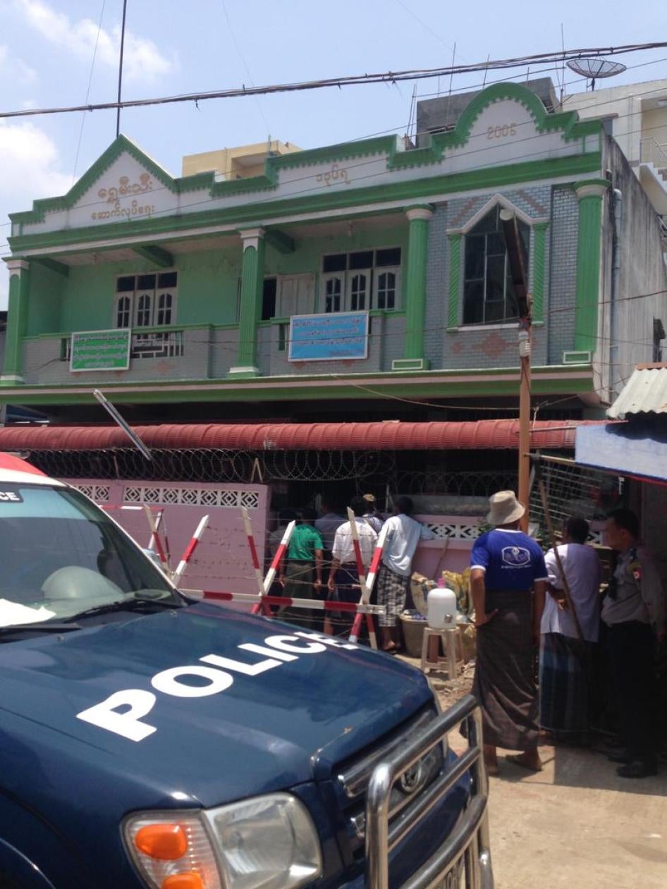 Human Rights Watch visited Thaketa Township on April 29 and observed dozens of police outside both schools. Just after 11 a.m., local authorities and school representatives, along with individuals identified by local residents as Buddhist ultranationalists, entered the schools to examine them. After they emerged, the officials replaced the locks and put yellow tape and barricades around the entrances. Police outside the schools have since refused to allow Muslim community members, including those whose children attend the schools, to enter.