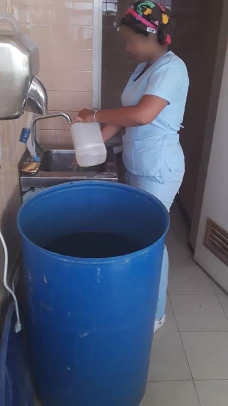 Many patients are also forced to take on part of the burden of promoting a hygienic environment. Patients or family members bring water for the patient to drink, for medical procedures, and even to clean the bathrooms and flush the toilets. In one major hospital, patients had to bring 25 liters of water to be admitted. In another, if the patient or the patient’s family does not provide water, their surgery is cancelled. As the OHCHR observed in its 2019 report on Venezuela, “[F]amilies of patients have to provide all necessities, including water, gloves, and syringes.”