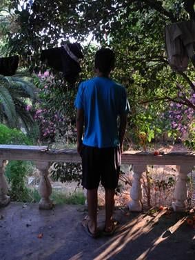 Abdullah P., a 24-year-old Afghan asylum seeker, looks at the sea from a parking lot in Patras, Greece, where he lives with other migrants hoping to get on a ferry to Italy. Italy returned Abdullah to Greece on August 20, 2012, but he told Human Rights Watch he will try to undertake the journey again and again. © 2012 Eva Cosse/Human Rights Watch.