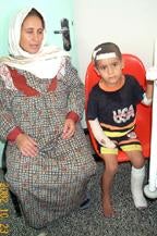 Ehad Fayez Barakat, aged seven, with his mother Afdal.