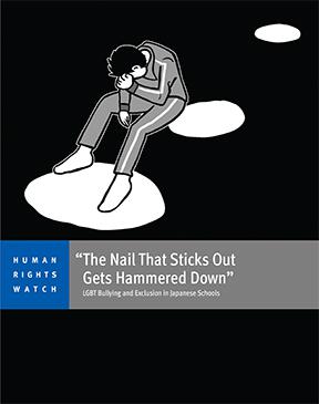 Em suas 84 páginas, o relatório “’Prego que destoa leva martelada’: Bullying e Exclusão de Indivíduos LGBT nas Escolas Japonesas”, analisa as falhas das políticas do governo japonês que expõem estudantes LGBT ao bullying, e que inibem seu o acesso à informação e à expressão individual. Apesar da prática do bullying nas escolas do Japão ser generalizada e cruel, as políticas governamentais que abordam o assunto não tratam especificamente dos estudantes LGBT, um dos grupos mais vulneráveis. Na realidade, a política nacional de prevenção ao bullying promove normas sociais em detrimento de direitos básicos. Estudantes LGBT afirmaram à Human Rights Watch terem ouvido de professores que ser abertamente gay ou transgênero é algo egoísta e que, portanto, esses alunos não deveriam ter expectativas de ter êxito escolar.