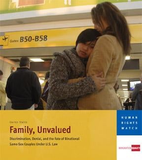 <table cellpadding="3" cellspacing="0"><tr><td><img src="http://hrw.org/images/home/2006/100/usdom13290.jpg" align="left" border="0" /></td> <td valign="top">This report documents how U.S immigration law and federal policy discriminate against binational same-sex couples.</td></tr></table>