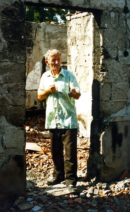 A survivor of the Cuska killings describes how he and other men were lined up in this house to be executed. © 1999 Fred Abrahams/Human Rights Watch 429497