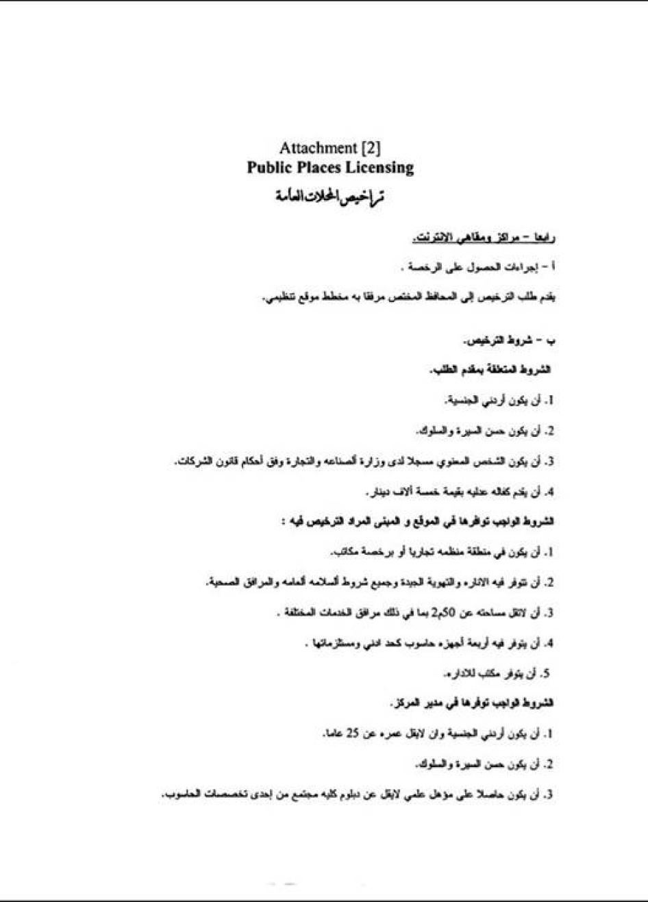 [391]Arrêté du Ministre des Communications du 10 décembre 1998 complétant l'arrêté du 19 mars 1998, portant approbation du cahier des charges fixant les conditions techniques et administratives d'exploitation des Centres Publics des Télécommunications, http://www.sospublinet.tn/cahier.htm, accessed September 26, 2005.