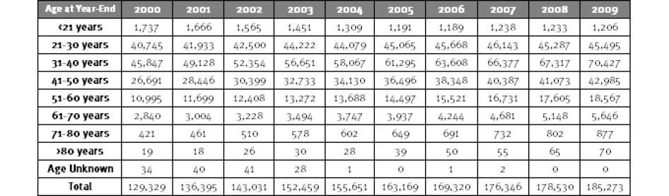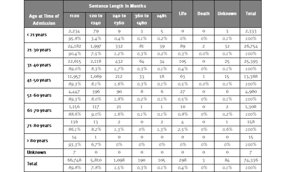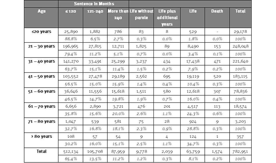 Table 1: Sentenced State and Federal Prisoners by Age, 1995- 2010 [9]