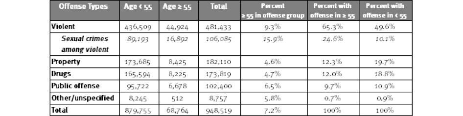 • As of 2010, 8 percent of sentenced state and federal prisoners are age 55 or older, more than doubling from 3 percent in 1995.