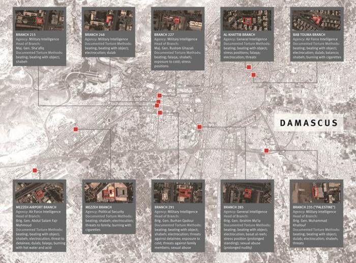Based on more than 200 interviews with former detainees, including women and children, and defectors from the Syrian military and intelligence agencies, this report focuses on 27 of these detention facilities. For each facility, most of them with cells and torture chambers and one or several underground floors, we provide the exact location, identify the agencies responsible for operating them, document the type of ill-treatment and torture used, and name, to the extent possible, the individuals running them. The facilities included in this report are those for which multiple witnesses have indicated the same location and provided detailed descriptions about the use of torture. The actual number of such facilities is likely much higher.