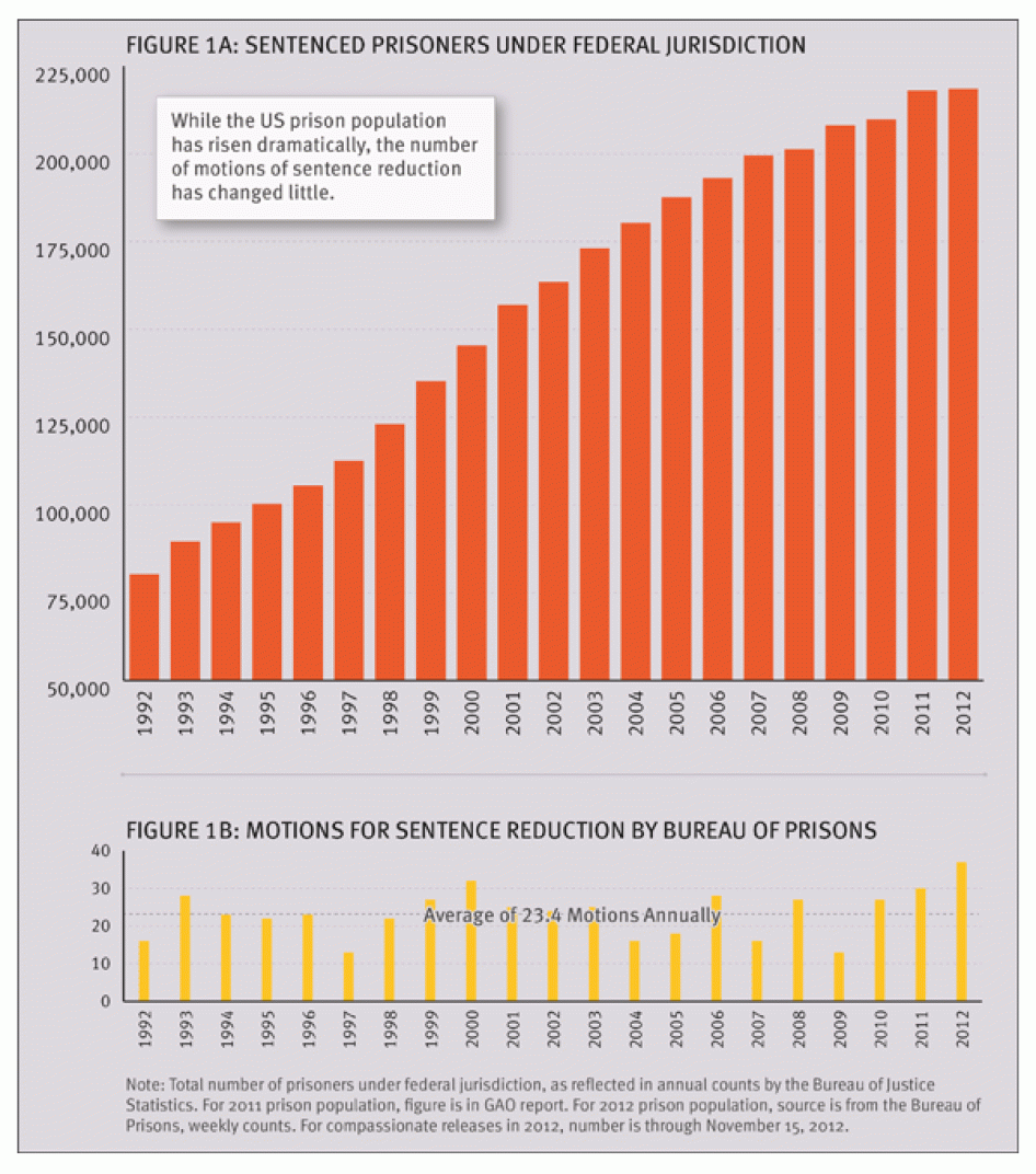 Prisoners cannot seek a sentence reduction for extraordinary and compelling circumstances directly from the courts. By law, only the Federal Bureau of Prisons (BOP, the Bureau) has the authority to file a motion with a court that requests judicial consideration of early release. Although we do not know how many prisoners have asked the BOP to make motions on their behalf—because the BOP does not keep such records—we do know the BOP rarely does so. The federal prison system houses over 218,000 prisoners, yet in 2011, the BOP filed only 30 motions for early release, and between January 1 and November 15, 2012, it filed 37. Since 1992, the annual average number of prisoners who received compassionate release has been less than two dozen. Compassionate release is conspicuous for its absence.