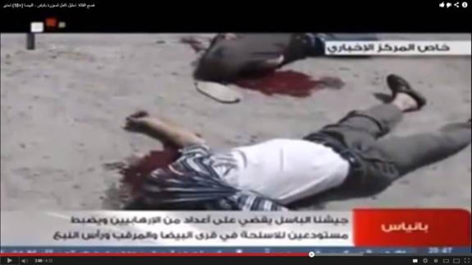 Human Rights Watch believes the witnesses are credible including because of the level of detail with which they described what they observed and because of the significant corroboration of facts in the statements with video footage filmed by the witnesses, as well as footage of government forces operating inside al-Bayda and Baniyas, likely filmed by some government or pro-government fighters, that was later published on YouTube.