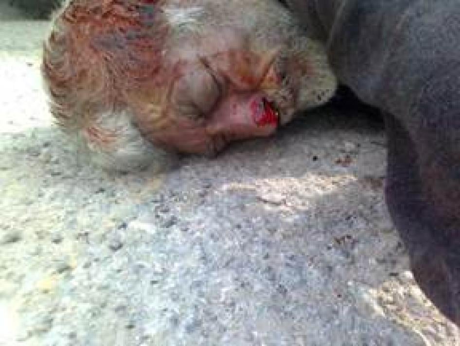 According to three local residents who found their bodies after the pro-government forces had left the village, all the family members who were present in their homes on May 2–at least 9 men, 3 women, and 14 children–were executed with the exception of a three-year old girl who they said was wounded by three bullets but survived. Human Rights Watch was unable to locate the girl or confirm her survival. The information below about the death of the Bayasi family is based on the three residents’ statements as well as video footage they took of the corpses.