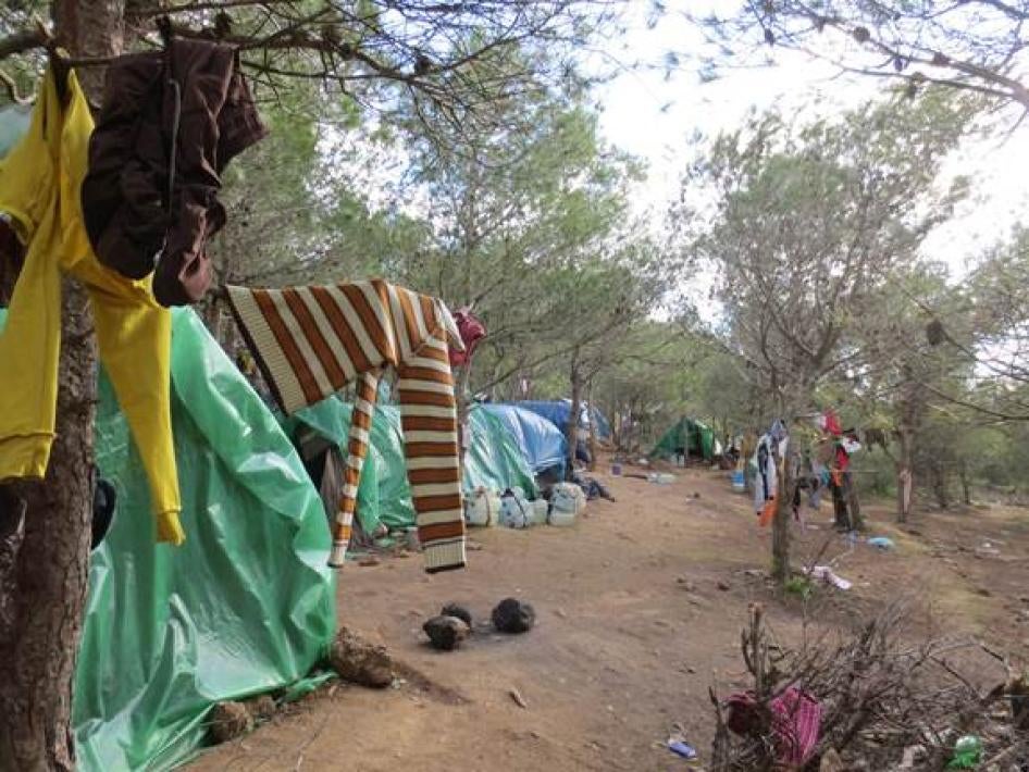 In and around Oujda, migrants live in several sites, including the “Fac” site on the university campus in the city,[6] and, outside the city, the “Café Gala” area, the “Moussakine” forest, and the Sidi Maafa forest. Interviews with migrants and with local NGOs indicated that most migrants who enter Morocco from Algeria go to the Oujda Fac site to join other migrants and find smugglers who can help them on the next step of their journey.[7] Some settle in more secluded sites, such as in the forested hills and mountains outside of Oujda. While waiting to make the passage to Melilla, migrants stay in several sites around Nador: Mount Gourougou, the mountain on the Moroccan side of the border with Melilla; forest areas near Selouane, a neighboring town; and forest areas near the Marjane supermarket outside of Nador.