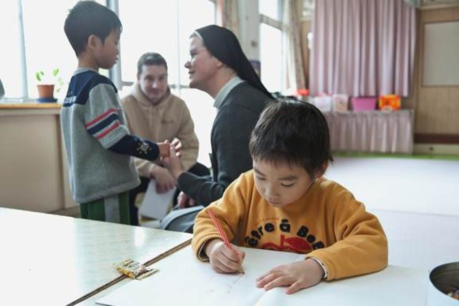 Over-institutionalization is a problem for all children who need alternative care, but it is especially problematic for infants— around 3,000 of who lived in infant institutions in 2013. International standards set out that alternative care for young children under three should be, almost without exception, in family-based settings, and many child development specialists suggest that infants are at risk for attachment disorder, developmental delay, and neural atrophy when in institutional care. One care worker in a Tokyo institution told Human Rights Watch that the infants housed there have no one to hold them when they cry at night because there are too few staff.