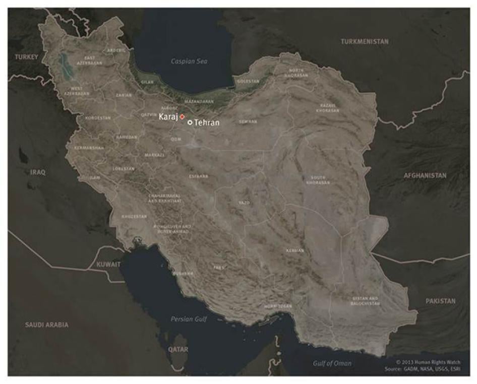 The city of Karaj is situated about 47 kilometers northwest of Iran’s capital Tehran. It is the principle city of Alborz province. There are three main prisons in the city: Rajai Shahr prison, Ghezel Hesar prison, and the Central Prison at Karaj. Human Rights Watch’s investigation identified 63 prisoners held in Karaj prisons, including 59 in Rajai Shahr prison and 4 in Central Prison at Karaj, who appear to have been convicted solely in connection with their involvement in peaceful political activities or for exercising their rights to freedom of speech, assembly, or association.