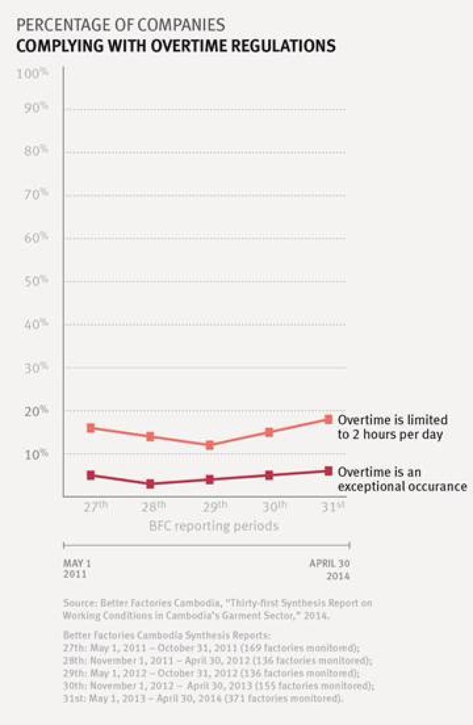 [408] CCC and CLEC, 10 Years of the Better Factories Cambodia Project, 2012, p. 29; WRC, Monitoring in the Dark, 2013, pp. 73-4.
