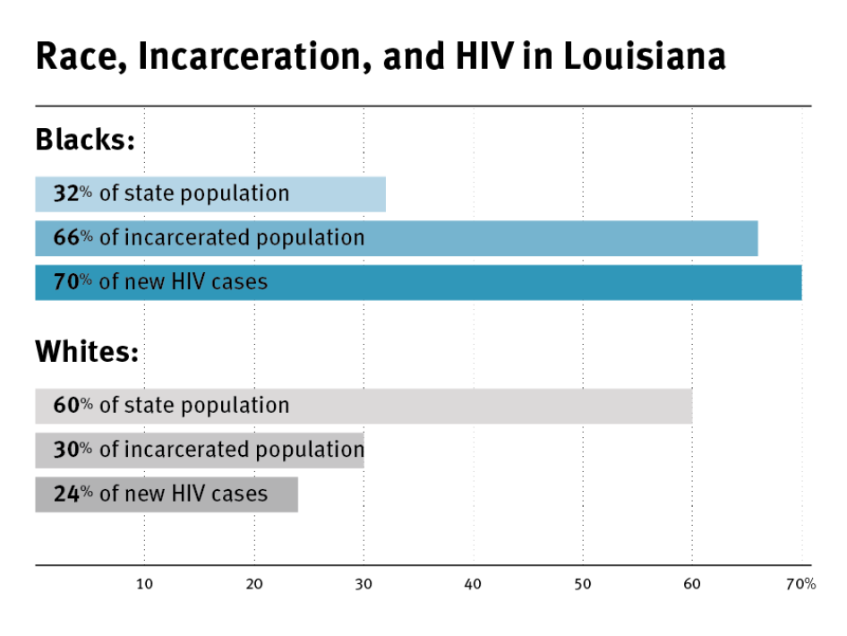 The same socioeconomic factors that place people at risk for HIV—poverty, homelessness, drug dependence, mental illness—also place them at higher risk of incarceration. The HIV epidemic and the criminal justice system are marked by similarly disturbing racial disparities: in Louisiana, African-Americans are 10 times more likely to be diagnosed with HIV and five times more likely to be incarcerated than whites.