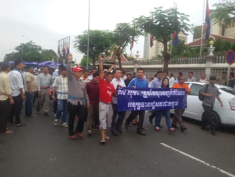 At midday on October 26, 2015, some two dozen men viciously assaulted two opposition parliamentarians as they left Cambodia’s National Assembly following an anti-opposition demonstration outside the building. Kung Sophea and Nhay Chamraoen of the Cambodia National Rescue Party (CNRP) were dragged from their cars and beaten, kicked, and stomped on.