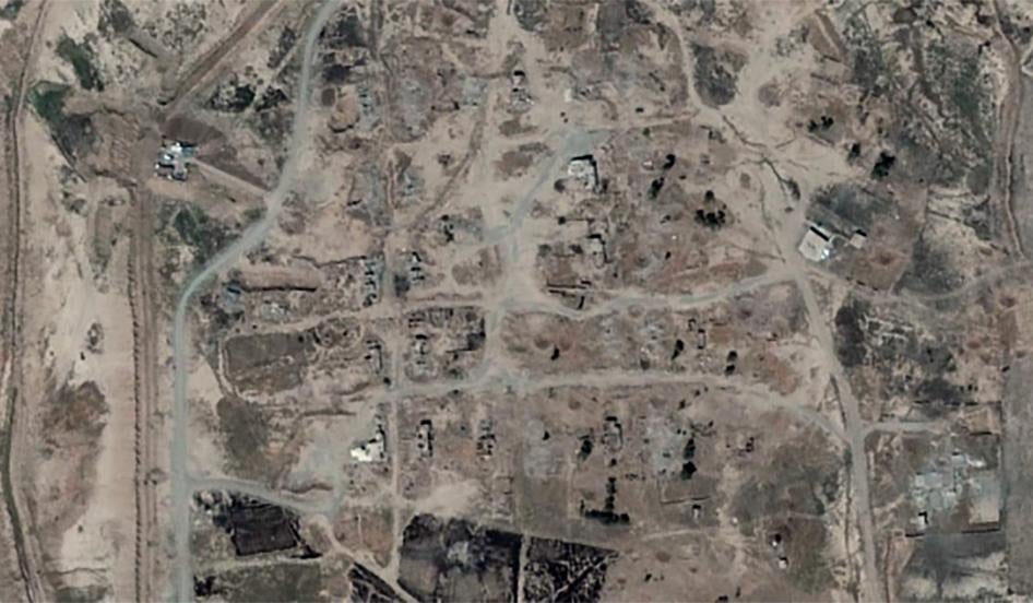 An analysis of satellite imagery from various points in 2014 and 2015 shows that, in addition to the initial destruction Human Rights Watch documented in December 2014, significant additional destruction occurred in early 2015, at a time when the area was not an active battlefield. A Human Rights Watch visit to the area in August 2015 found evidence corroborating this.