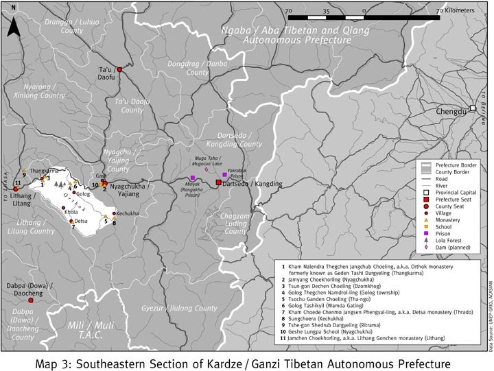 Map 3: Southeastern Section of Kardze/Ganzi Tibetan Autonomous Prefecture