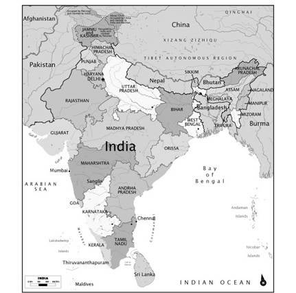 This map does not show the states of Chhattisgarh, Jharkhand, and Uttaranchal, which were created in 2000.