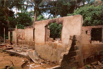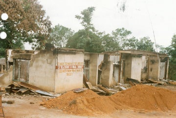 The compound of Olusegun Mbadiwe Ibiam, destroyed by PDP supporters on May 4, 2003. Uwanna, Afikpo North, Ebonyi State.