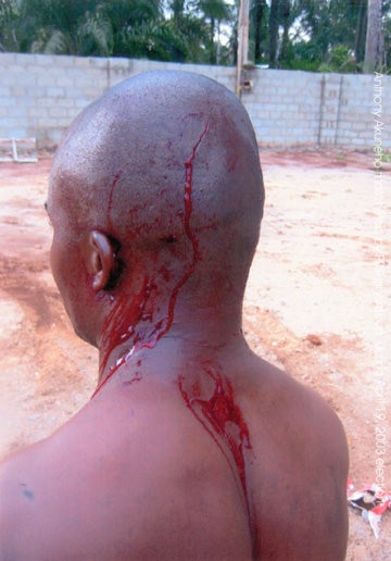ANPP agent Anthony Akuneho Koga, injured by PDP supporters on April 19, 2003, Ikeduru local government, Imo State.